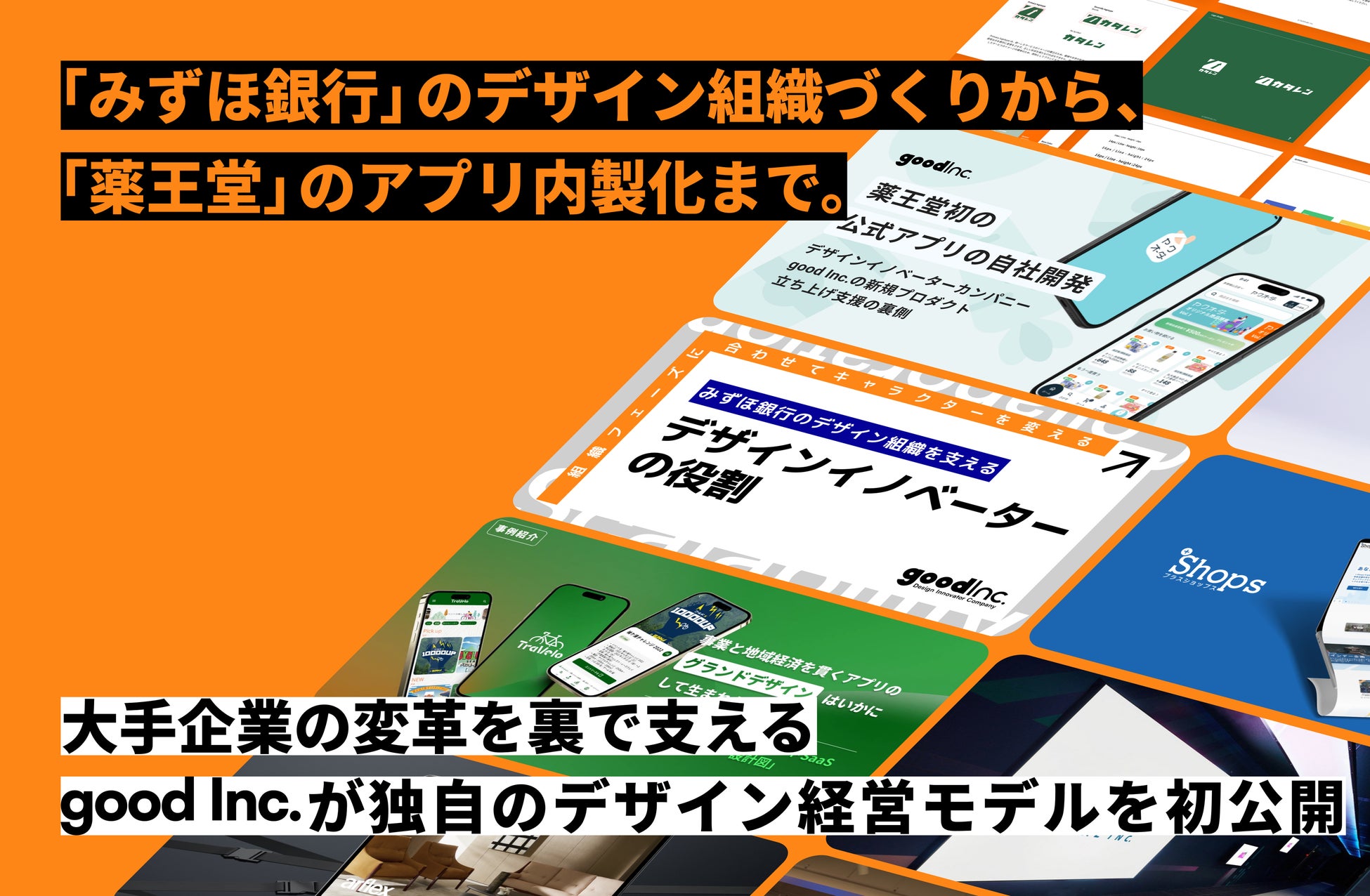 ▼ 詳細はこちら(PR TIMES) 「みずほ銀行」のデザイン組織づくりから、「薬王堂」のアプリ内製化まで。大手企業の変革を裏で支える「good Inc.」が、独自のデザイン経営モデルを初公開